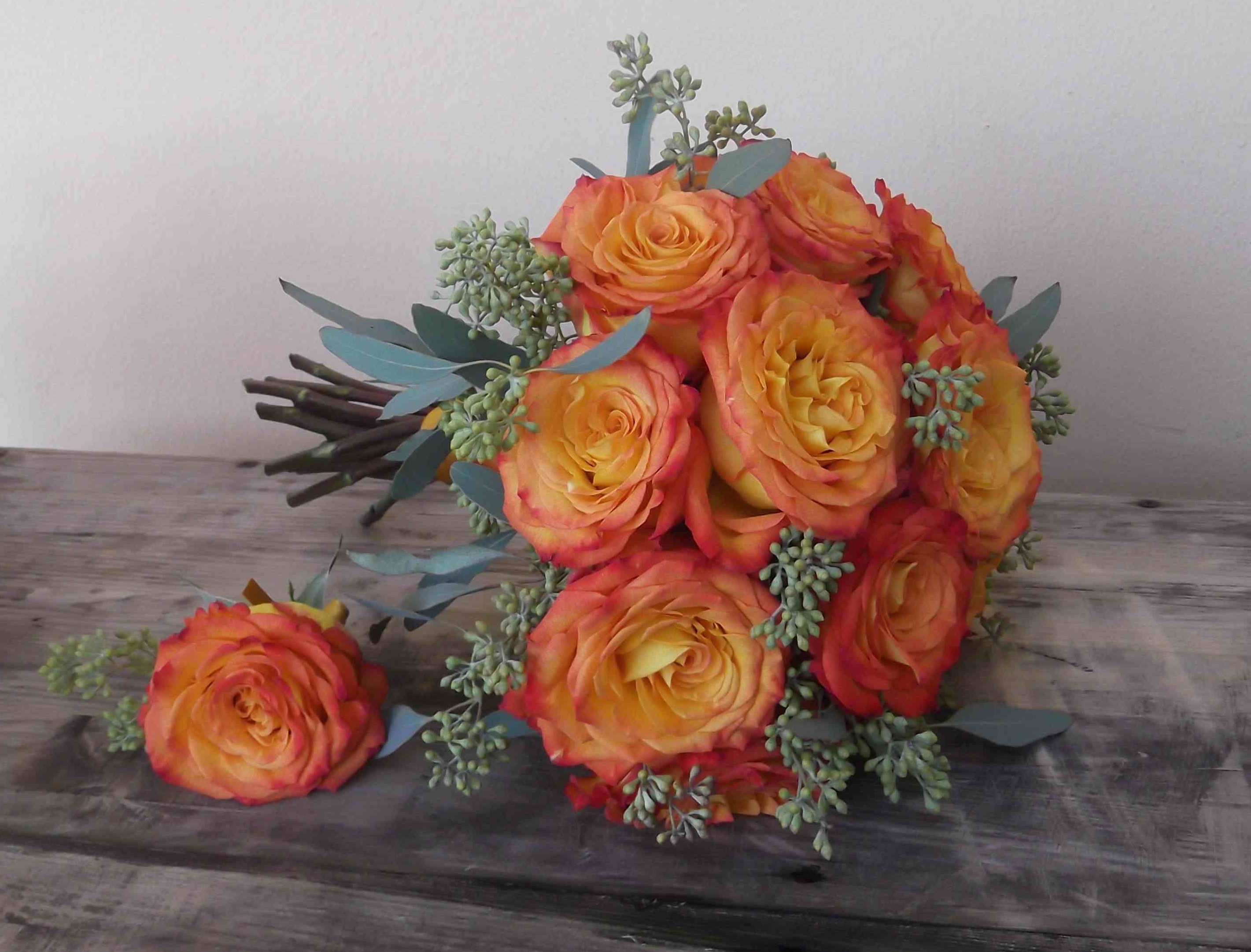 - customized bridal bouquet and butonierre in your choice of up to 3 colors (includes roses, astromerias and/or orchids)